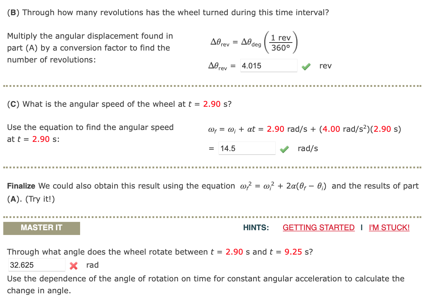 3 rads how long is motion at the start of this 40. A wheel starts from rest and accelerates with constant angular acceleration to an angular velocity of 900 revmin in 20 s. A What is the angular velocity of the wheel at the start of the 300 s interval.